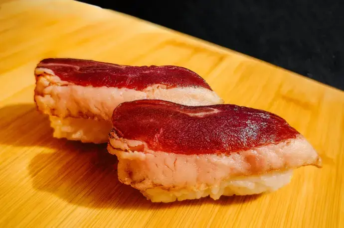 Les nigiri sont des boulettes de riz vinaigré, surmontées d'une tranche de magret de canard.